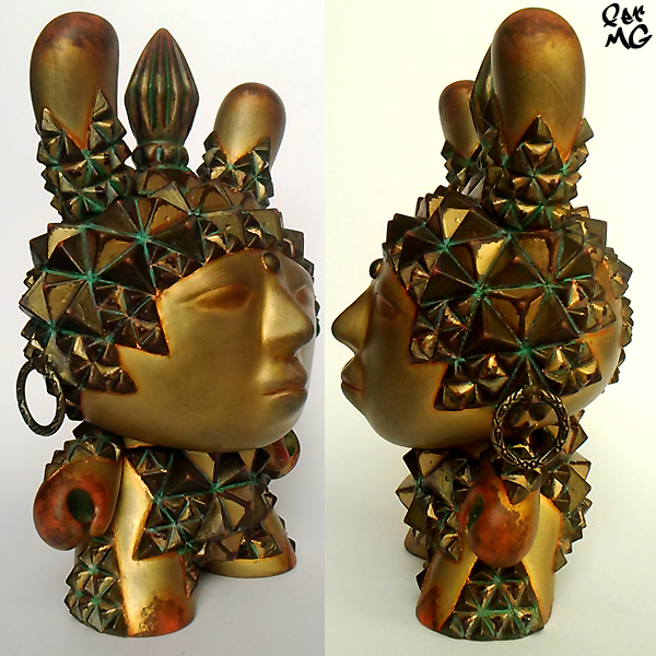 - Handpainted (spray and acrylics, gold finish, matte varnish layer protection)